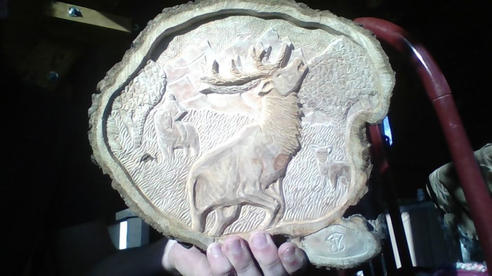 Mint a képen látható egy gím bika van a faragványon, ami már kevésbé látszik, apró hajszál repedések díszítik a fát.