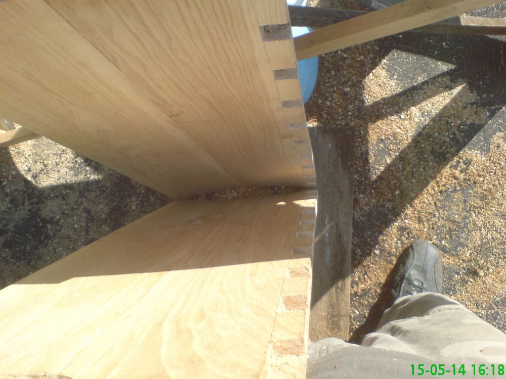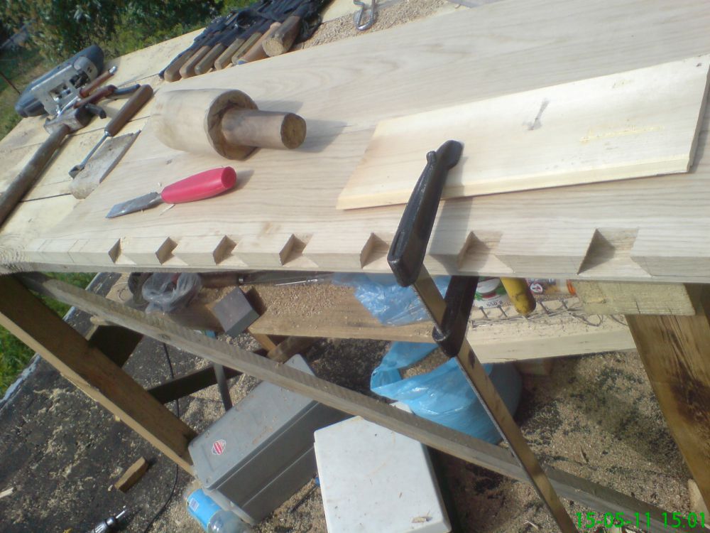 Az illesztéseket rejtett fecskefarkas fogazású csapolással csináltam/csinálom meg, mert akkor egy elnyűhetetlen örök darab lesz.
